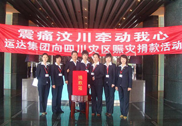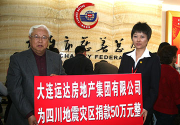 2008年5月15日,四川特大地震牽動(dòng)所有運(yùn)達(dá)人的心,運(yùn)達(dá)從企業(yè)到員工慷慨解囊捐助50多萬元支援災(zāi)區(qū);同時(shí)集團(tuán)又于5月29日到大連市中山區(qū)春海小學(xué)為四川籍受災(zāi)學(xué)生捐款15000元學(xué)費(fèi)。此次捐款得到了大連慈善總會(huì)的高度贊揚(yáng),展現(xiàn)了運(yùn)達(dá)集團(tuán)高度的社會(huì)責(zé)任感。