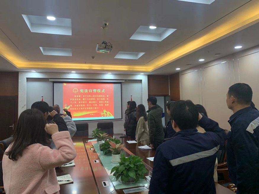 公司組織開展一系列憲法宣傳活動(dòng),掀起了一陣學(xué)習(xí)憲法的熱潮。一是組織全體干部職工關(guān)注“黃石司法”微信公眾號(hào),積極動(dòng)員大家開展憲法法律知識(shí)網(wǎng)絡(luò)有獎(jiǎng)競(jìng)答活動(dòng),公司共60余名干部職工參與測(cè)試,測(cè)試效果顯著,平均分達(dá)80分。二是組織青年干部職工觀看《身邊的憲法》公益宣傳片,深刻把握憲法核心要義,引導(dǎo)干部職工不斷深化對(duì)憲法的政治認(rèn)同和情感認(rèn)同。三是組織干部職工進(jìn)行憲法宣誓,錚錚誓言詮釋對(duì)敬畏憲法、遵守憲法、維護(hù)憲法的使命感和責(zé)任感。四是通過(guò)公司微信公眾號(hào)平臺(tái)發(fā)布憲法文本,深入學(xué)習(xí)貫徹習(xí)近平法治思想,大力弘揚(yáng)憲法精神,堅(jiān)決維護(hù)憲法權(quán)威,切實(shí)推動(dòng)憲法實(shí)施。